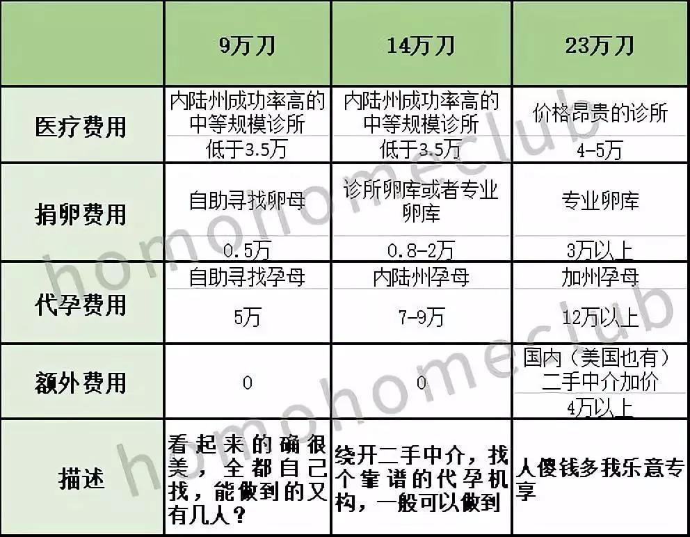 医疗费用:包括卵子收集、胚胎移植和产前护理。